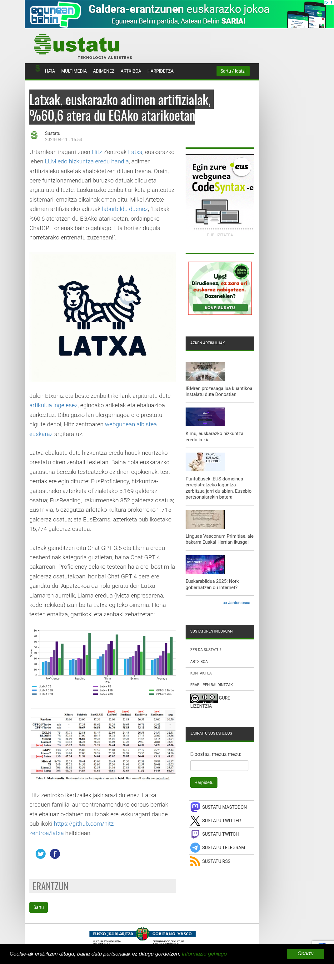Latxa hizkuntza eredua GPT-4ren parean geratu da lehiaketa batean